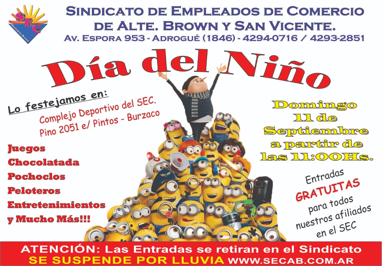 EL domingo 11 de setiembre a partir de las 11 horas te esperamos en Pino 2051 entre Pintos y Burzaco para festejar el día del niño.